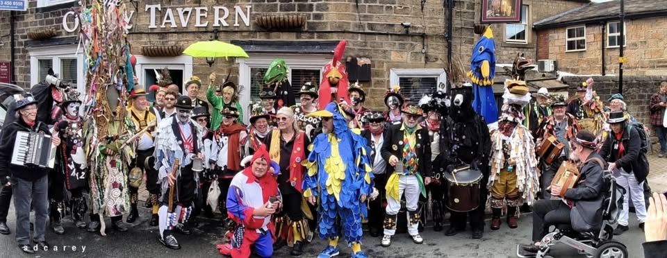 Alongside the Fool, there may be a mythical and mysterious Beast! Traditionally, this would have been a Hobbyhorse, but now it is just as likely to be a Dragon or a Unicorn. Be assured all morris Beasts are friendly and just love doing what Beasts do best: tormenting and teasing the audience, especially children. Additionally, they like sunbathing, riding bicycles, drinking beer, and eating - eating money of course … coins of the realm. Phil Underwood compiled an archive of Morris Ring Animals some time ago which is well worth a visit Morris Ring Animal Archive