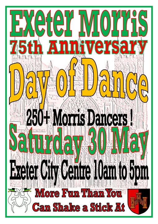 Exeter Morris have invited 15 other Morris sides from the Southwest (from all three Morris groups) to join them on the day, so there will be between 200 and 250 Morris dancers and musicians in attendance.